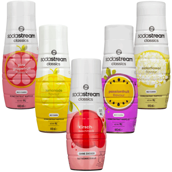 5x Syrop do SodaStream 440ml – Pink Grejpfruit Zero, Lemon Zero, Wiśnia Bez Cukru, Passionfruit Zero, Elderflower Zero